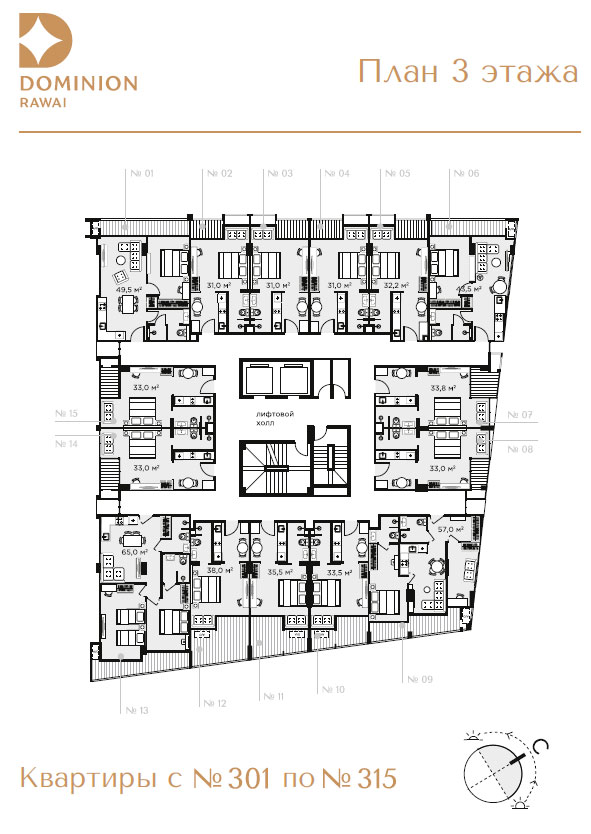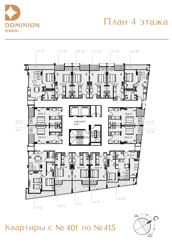 Апартаменты студия от 31 кв.м. Апартаменты с 1 спальней от 43,5 кв.м Апартаменты с 1 спальней от 49,5 кв.м Апартаменты с 2 спальнями от 57 кв.м Апартаменты с 2 спальнями от 64 кв.м