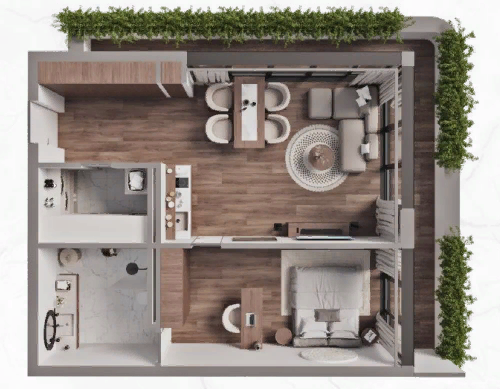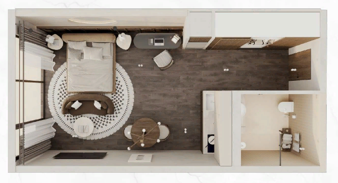 Дизайн комплекса сочетает утонченность деталей и полностью натуральные материалы (дерево, камень, текстиль). Собственно мебельное производство гарантирует качество.