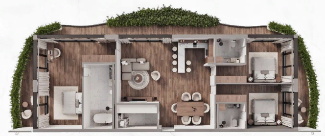 Студия ( от 33 м.кв.) 1 Спальня ( от 57,5 м.кв.) 2 Спальни ( от 110 м.кв.) 3 Спальни ( от 165 м.кв.)